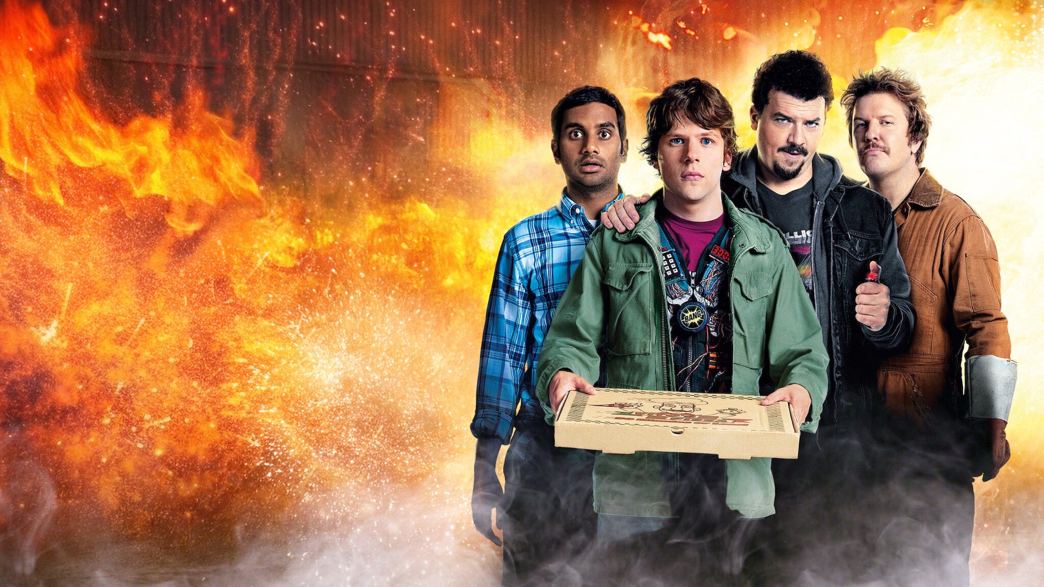 There is a proven and likeable straight man in Jesse Eisenberg. On one side is a proven and hilarious supporting cast -- Aziz Ansari, who is hilarious on Parks and Recreation, Danny McBride, who has become a star by channeling John Rocker as pitcher Kenny Powers on Eastbound & Down and blossoming funnymen Michael Pena and Nick Swardson. On the other side, there is a seemingly funny premise -- a slacker pizza delivery boy (Eisenberg playing Nick) settles on robbing a bank after McBride and Swardson, playing dimwitted losers with delusions of grandeur Dwayne and Travis, strap a bomb to his chest and demand $100,000.