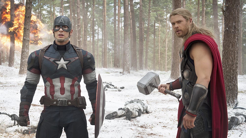 There is still plenty of spectacle to be had. Hulk smashes. Iron Man makes his cocky quips. Steve Rogers (Chris Evans) is so comically wholesome that he chides a fellow team member for their language during that first raid on Sokovia. Thor is still trying to wrap his head around this whole interacting-with-humans thing. Black Widow (Scarlett Johannson) escapes from the back of a semi as it is being airlifted away by Ultron’s murder-bots.
