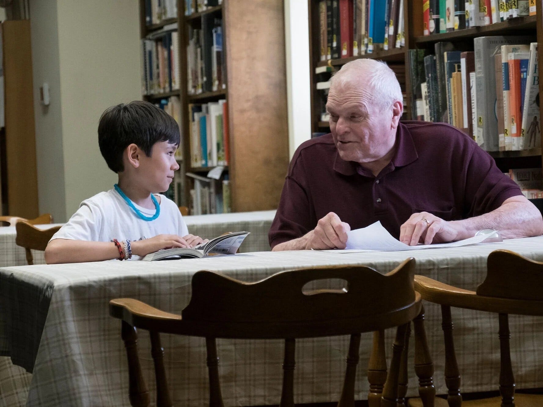 This premise opens the door for a third character, aging Korean War veteran Del, played by Brian Dennehy in his final role. While Kathy powers her way through an unfathomable amount of junk, Cody — tired of his tablet and a couple of goober agemates — strikes up an unlikely friendship with Del. Their main bond seems to be a kind of shared alienation from others. Cody’s mom is distracted. Del has recently lost his wife, and his friends at the neighborhood VFW, including Jerry Adler, whose character is showing early signs of dementia, seem incapable of helping him cope.