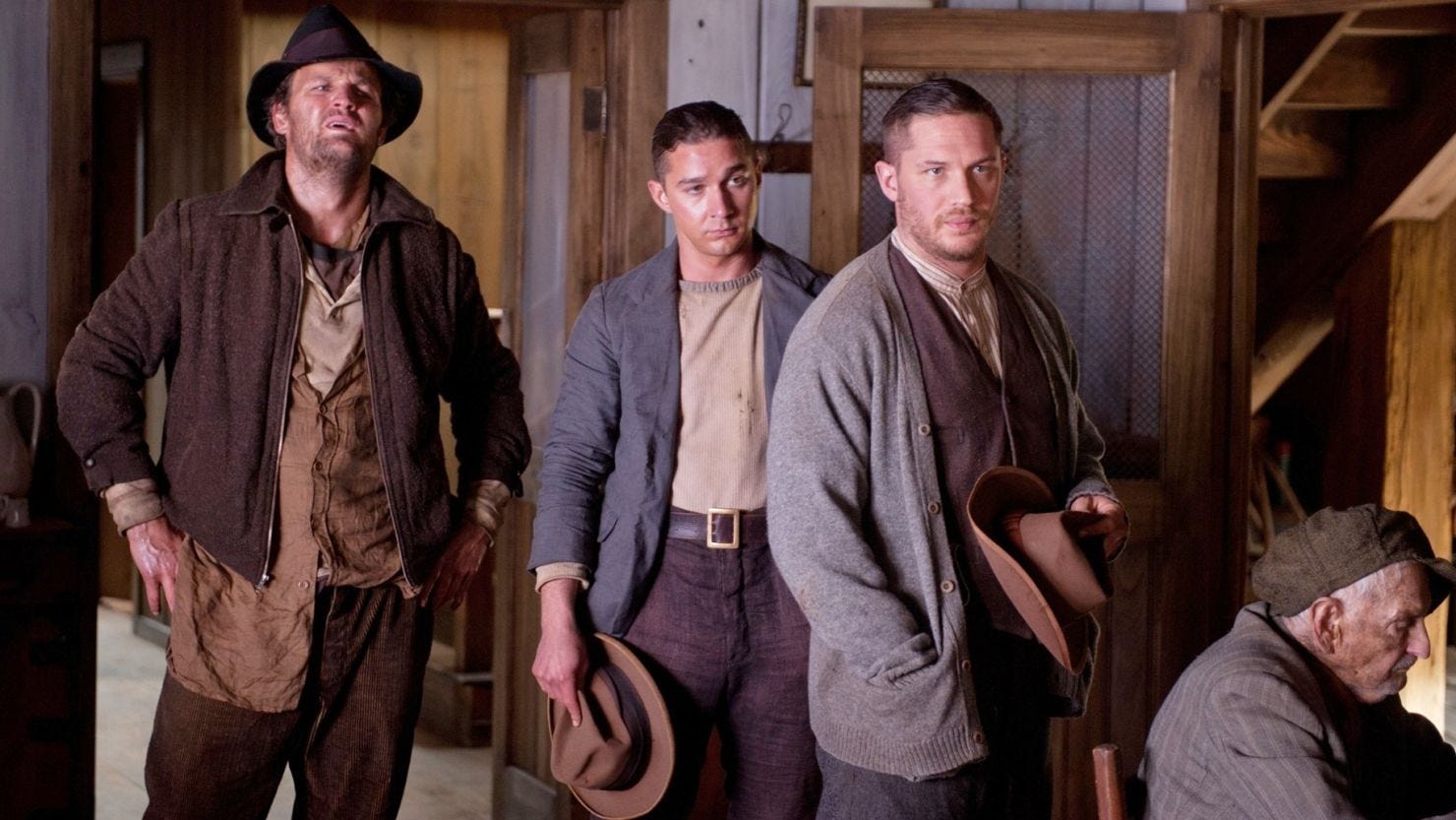 Lawless is all about the Bondurant brothers -- Jack (Shia LaBeouf), Forrest (Hardy) and Howard (Jason Clarke) -- Prohibition-era bootleggers in rural Franklin County, Virginia, who bristle when Commonwealth's Attorney Mason Wardell (Tim Tolin) attempts to shake them down, seeking a cut of their profitable moonshine business. The Bondurants are essentially alone in deciding to stand up to Wardell, thus bringing down the wrath of his primary enforcer, Charlie Rakes (Guy Pearce), a Special Deputy who hails from Chicago, squarely on their shoulders.
