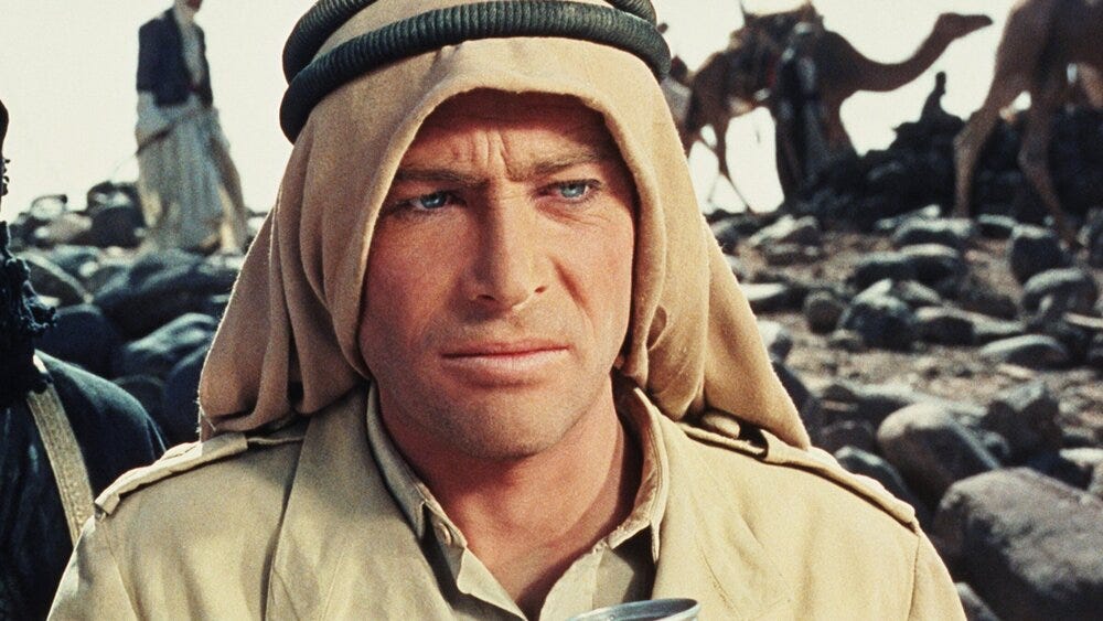 Almost everything about it is grand in scale. There is the vast expanse of the desert, of course. The setting is simply the most visible component of its sweep. There is Maurice Jarre’s stirring, swelling score, as performed by the London Philharmonic Orchestra. There is the context of the First World War and camels and horses and swords. And there is the question of nationhood for a collection of tribes.