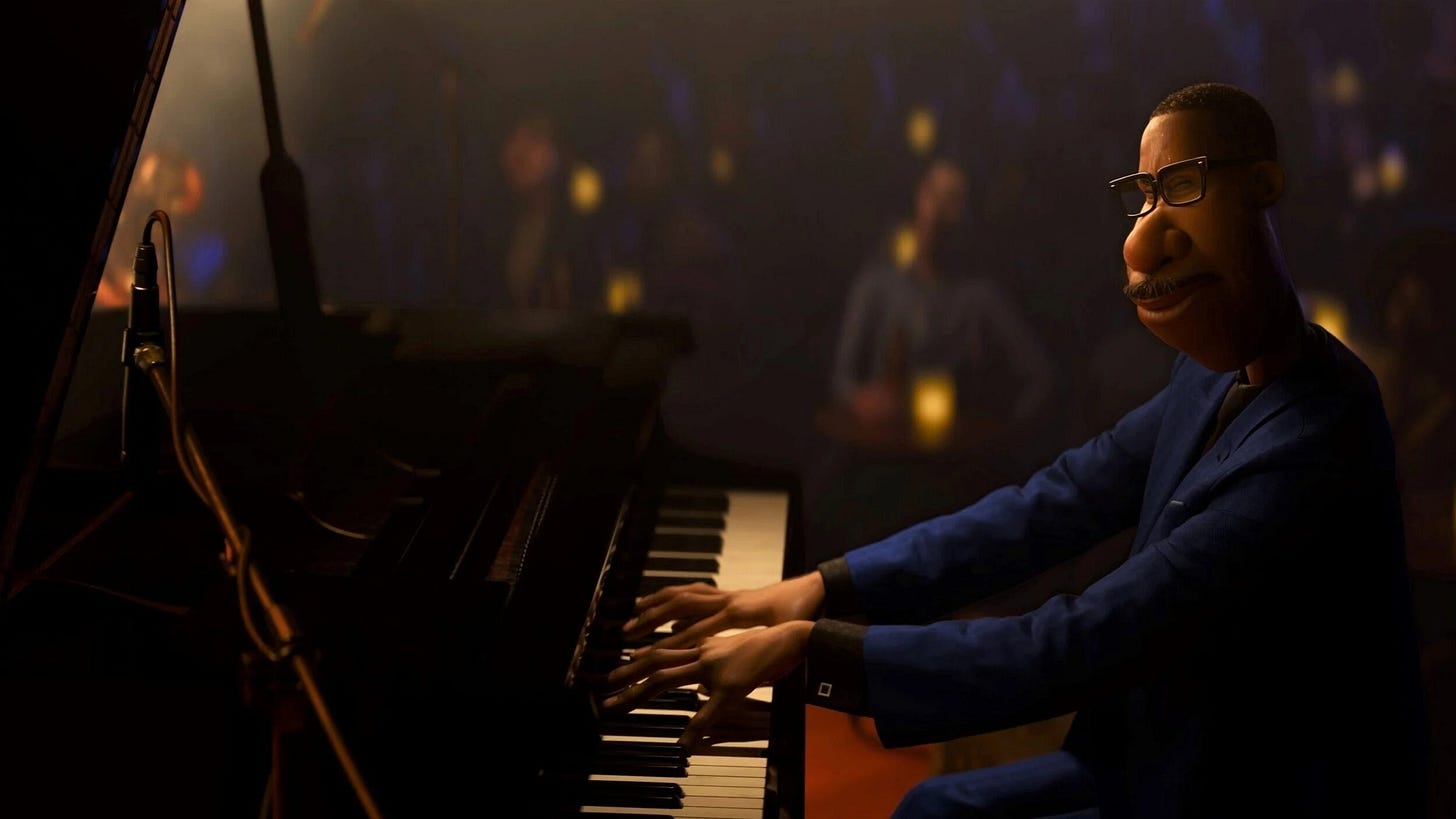 WALL-E, Up, Inside Out, and Coco traffic in nothing less than life and death and the search for meaning and identity. And now there is Soul to add to the list. It both continues this trend and is also the most direct and explicit on these themes. After all, its main character Joe Gardner, a music teacher who dreams of being a professional jazz musician, finds himself in an existential pickle before the title of the film is introduced.