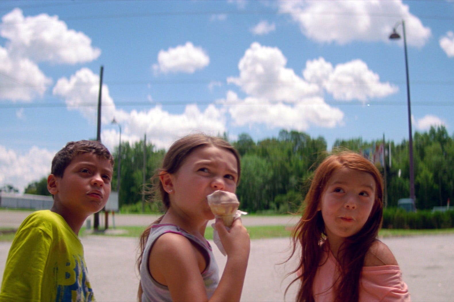 For the film’s first 30 minutes or so, we follow Moonee (Brooklynn Prince) and her friends as they romp through the central Florida landscape without a care in the world. Their adventures are mostly innocent: begging for change outside an ice cream store, spying on fellow hotel residents who tan in the nude. Their lives don’t seem perfect, but we’re reminded of how resilient kids are; they make it work.