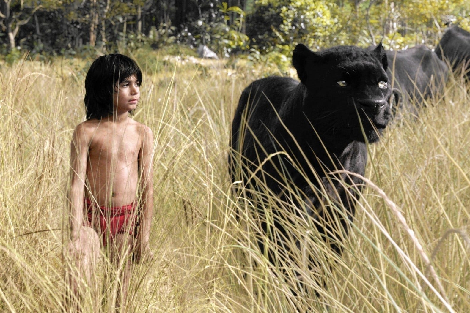 There is a deep, gooey center here — one that reminds us why we so love these characters still, almost 50 years later, and yet also helps us to see them in new ways. Mowgli (Neel Sethi) is still Mowgli — precocious and stubborn and wildly optimistic. But Favreau, along with screenwriter Justin Marks, finds something else in him: incredible fragility and irrepressible cleverness. Baloo (Bill Murray) is still the lovable best friend everybody wishes they had, but he’s also a self-interested schemer. King Louie (Christopher Walken) still hungers for knowledge, only here there’s also a bit of jungle mafioso mixed in. Even Shere Khan (Idris Elba), villain though he remains, seems like, well, less of a cartoon. It’s not so much that these things weren’t there before, just that Favreau manages to draw them out differently.